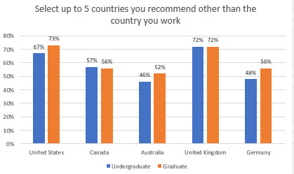 Question: Select up to 5 countries you would recommend for studies; however, you cannot pick the country you currently live in.